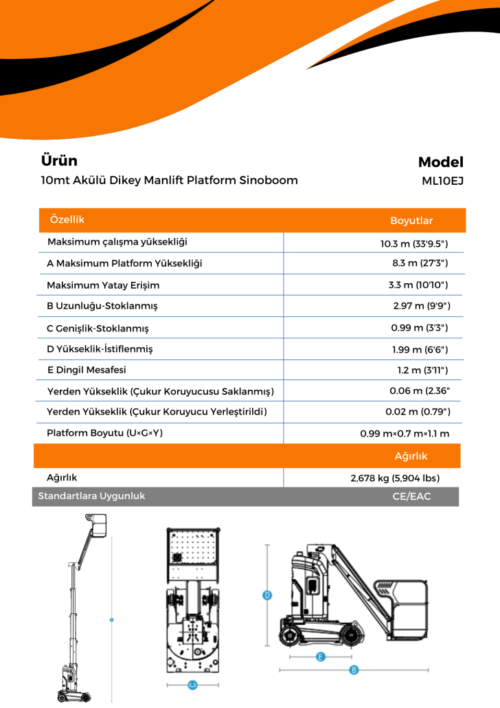 10mt Akülü Dikey Manlift Platform Sinoboom ML10EJ
