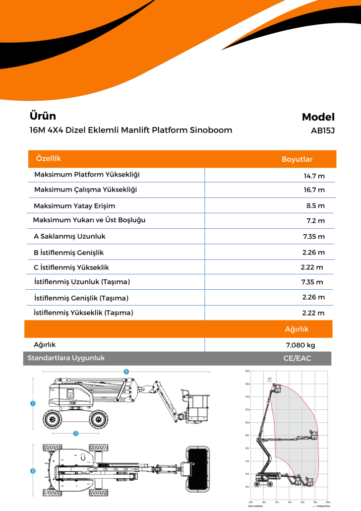 16M 4X4 Dizel Eklemli Manlift Platform Sinoboom AB15J