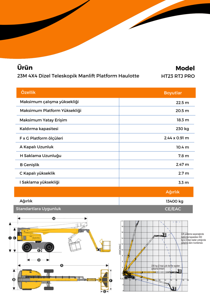 23M 4X4 Dizel Teleskopik Manlift Platform Haulotte HT23 RTJ PRO